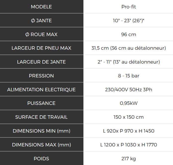 Le Pro-fit est muni d’un bras pivotant à fixation triangulée d’une rigidité inégalée qui tient la tête de montage à distance de la jante en toute circonstance.