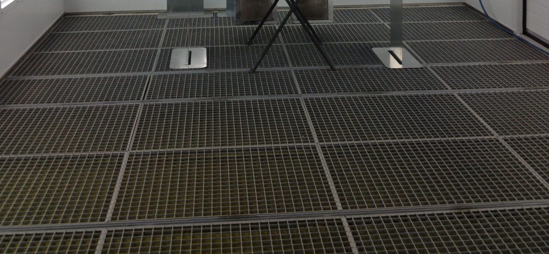 Des caillebotis sur toute la surface au sol de la cabine