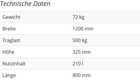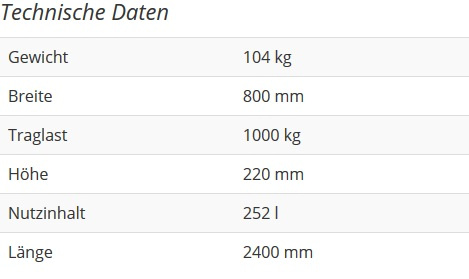 Capacité de charge max. 1000 kg, poids env. 104 kg
