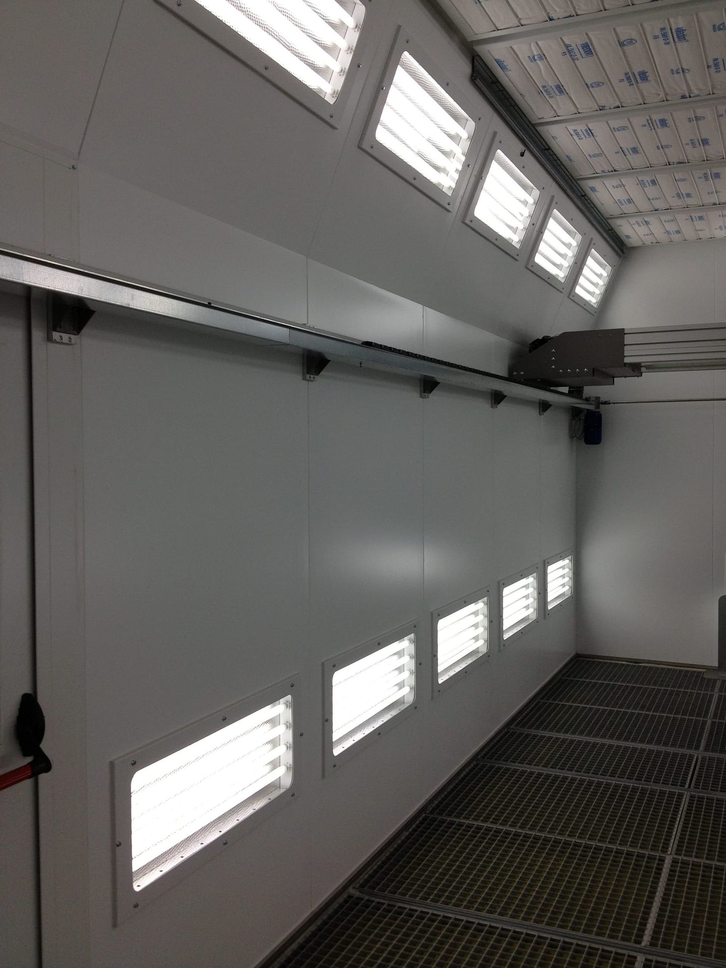 The patented shape of the ‘Colorado booth’ has inclined side pabels, which brings different advantages; very smooth air flow following the shape of the car, top lights are inclined towards the vehicule, and a higher air speed.