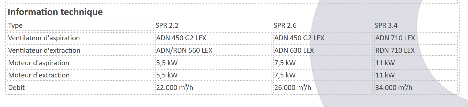 All units have fans and motors with sufficient capacity to generate the specified air flow.