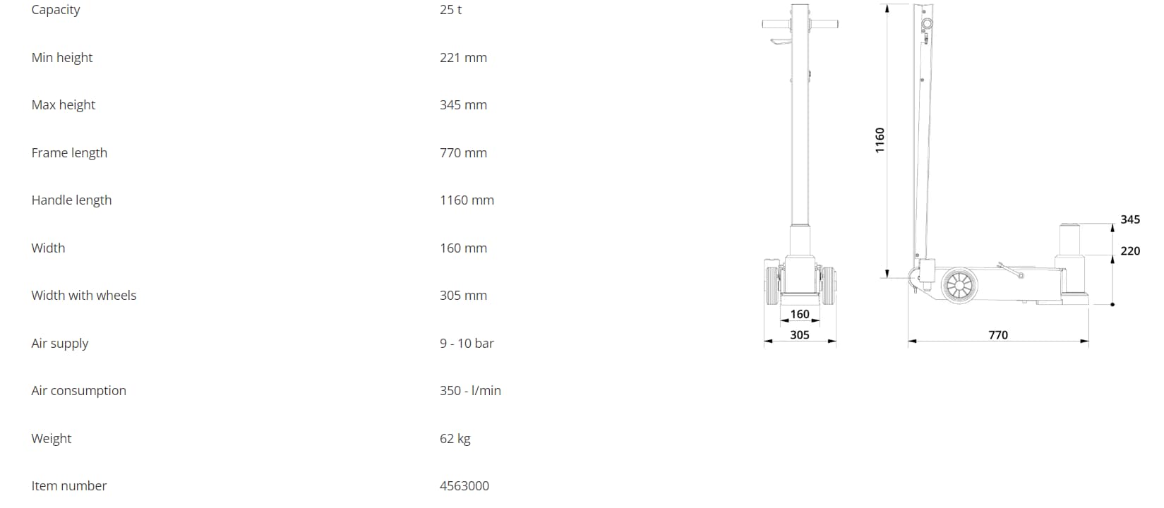 Ac Hydraulique – Cric hydraulique pneumatique – 25t – 25-1