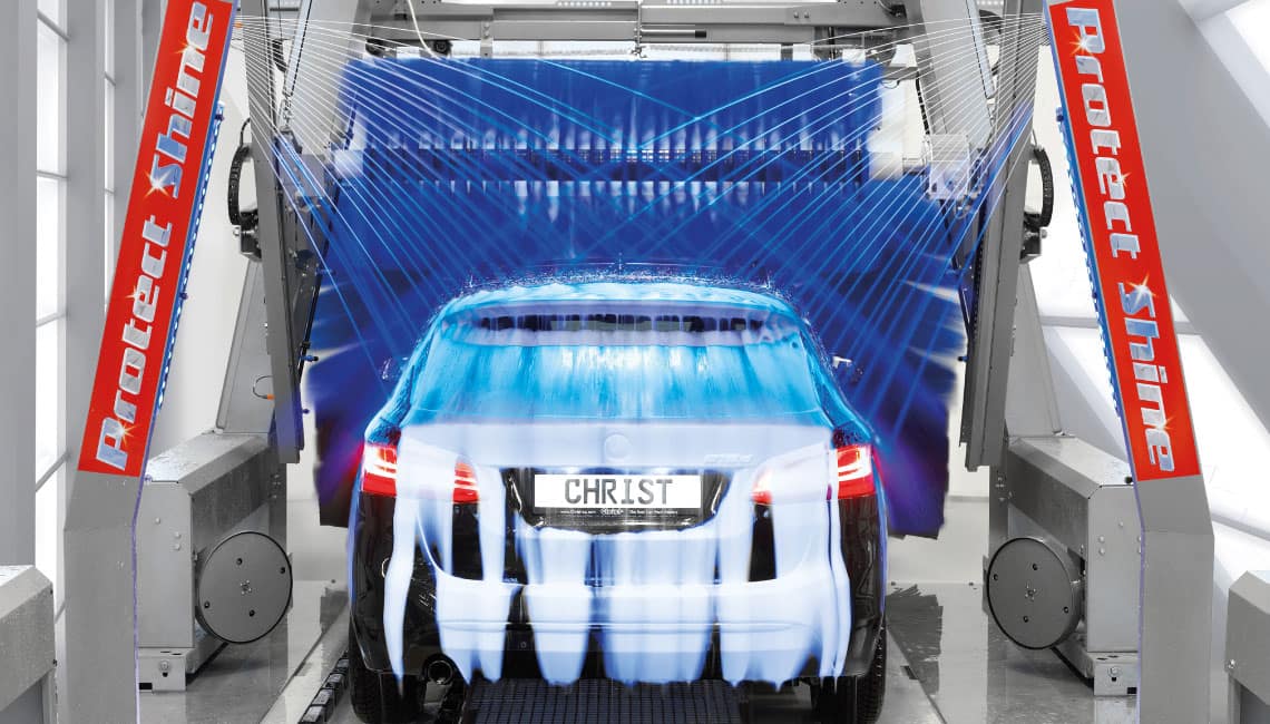 En option, tous nos cadres de portique EVOLUTION, cadres pivotants et cadres de séchoir au ventilateur peuvent être réalisés en version DURAPROTECT au lieu de la version de série en acier. DURAPROTECT = cadre en acier inoxydable (1.4301) avec revêtement par pulvérisation supplémentaire duplex. Le revêtement supplémentaire réduit jusqu’à 50 % les frais de nettoyage pour l’exploitant du tunnel de lavage par rapport aux portiques en acier inoxydable nu.