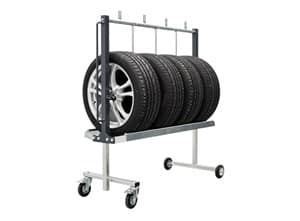 Ce chariot à roues est destiné à la fois au stockage et au transport des roues démontées. Le transport peut se faire de la voiture à la chaîne de montage des pneus.