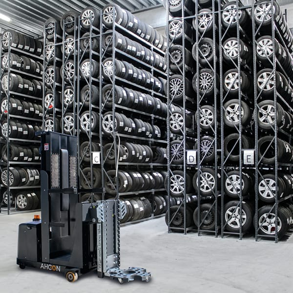 De nombreuses installations de stockage sont adaptées à des racks de pneus en hauteur – le seul défi consiste à trouver un moyen intelligent, sûr et ergonomique de faire entrer et sortir les pneus des racks de pneus en hauteur.