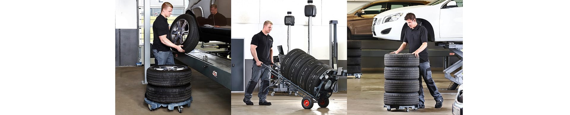 Découvrez comment vous pouvez transporter facilement et sans effort les pneus et les roues dans les zones de stockage et les baies de service. Cela peut vraiment être fait très simplement, rapidement et en toute sécurité.