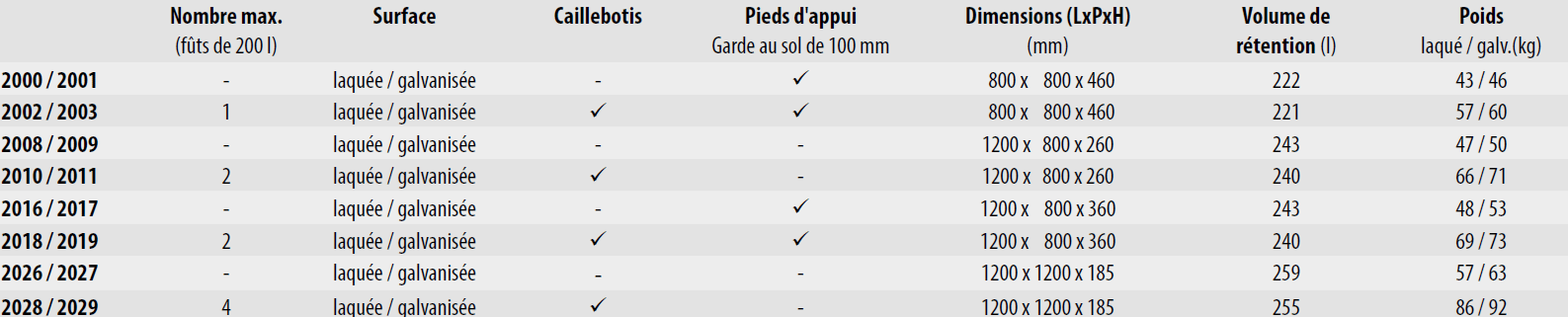 BACS DE RETENTION DE TYPE SERIE 2000