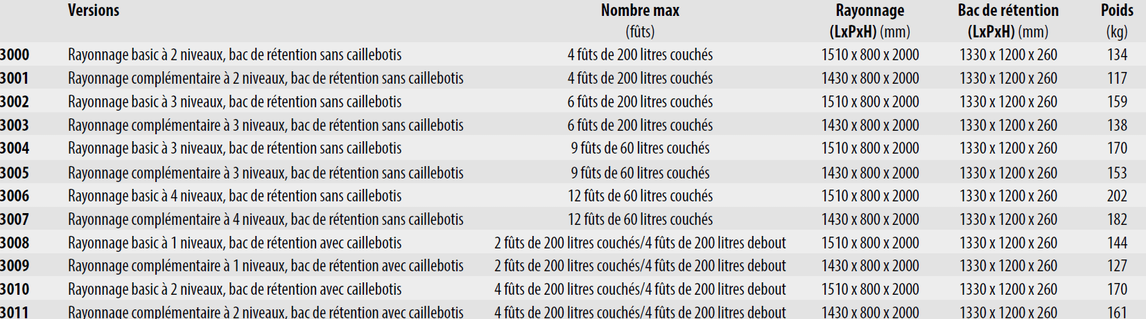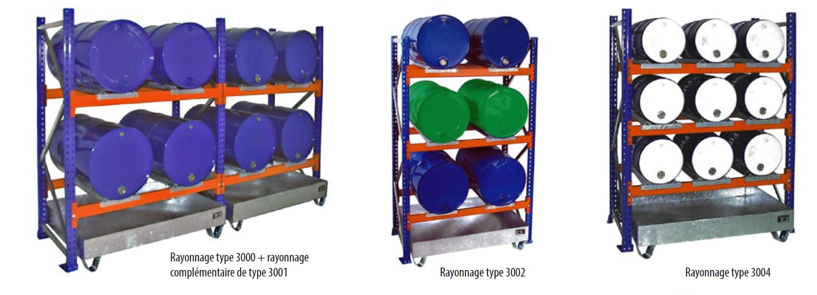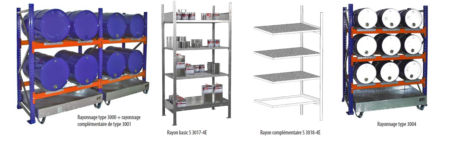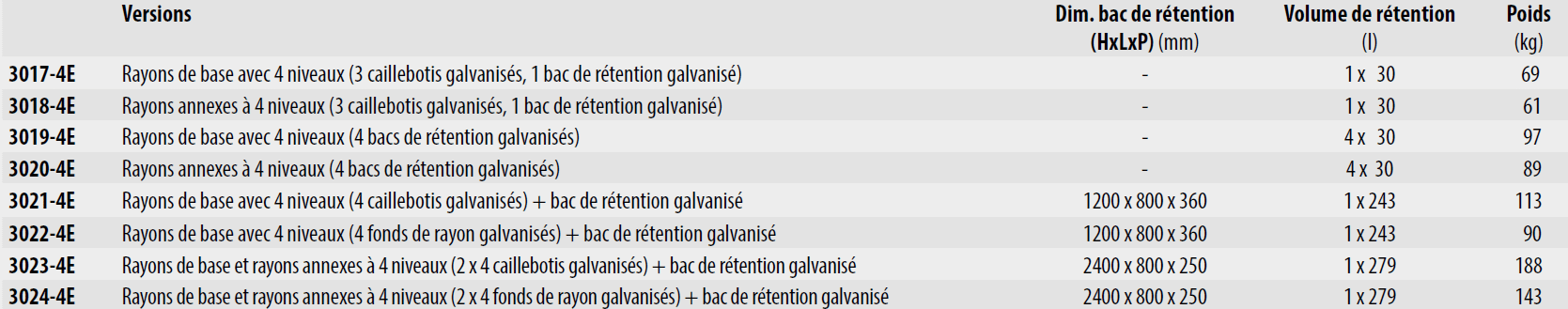 RAYONNAGES A PETITS RECIPIENTS AVEC BACS DE RETENTION TYPE SERIE 3000