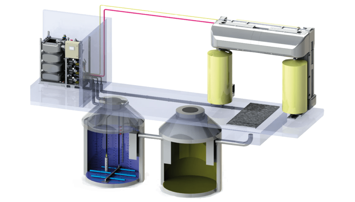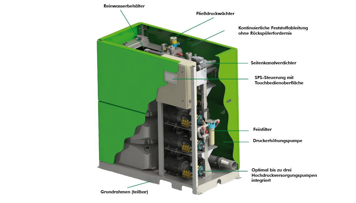 Ce recyclage de l’eau de la génération suivante se distingue par une excellente qualité de l’eau recyclée. Les substances nocives sont éliminées efficacement dans le bioréacteur. Une circulation continue et une aération de l’eau recyclée empêchent la production d’odeur d’eau recyclée désagréable. Les corps solides dans l’eau recyclée sont évacués en continu. Le rinçage à contre-courant devient ainsi superflu. La capacité du système de recyclage d’eau est donc disponible sur toute la longueur. L’installation BIOCLEAR de Christ a également reçu l’approbation technique générale de l’institut allemand des techniques de construction (DIBt Berlin).