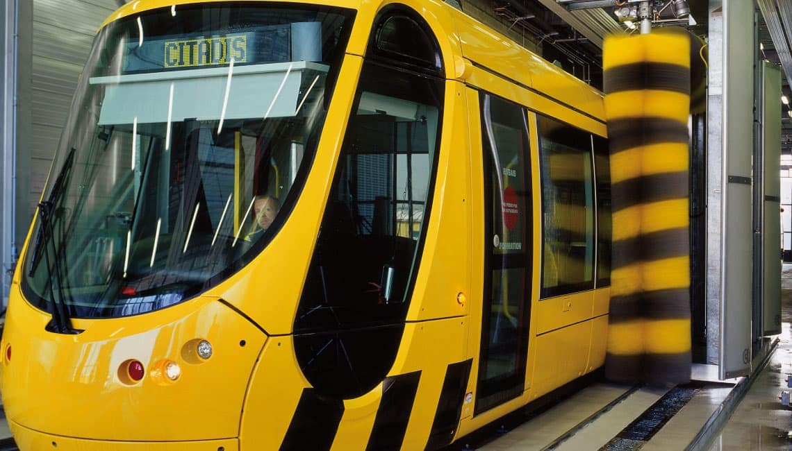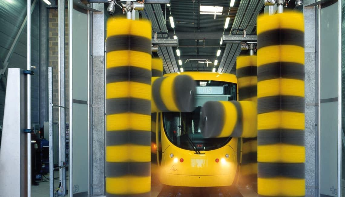 La station de lavage pour trains TRAINWASH existe, dans le modèle C7000 SOA pour le lavage durant le passage, le lavage semi-stationnaire ou pour le lavage lors de la traversée des trains et des tramways avec capteur de courant. Elle est composée de 2 moitiés de portique sans traverse. Le concept de l’installation C7000 SOA peut être complété avec les brosses latérales stationnaires supplémentaires de la C1000 SOA.
