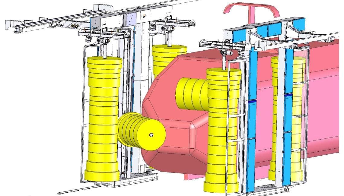 La station de lavage pour trains peut être équipée d’une brosse pour spoiler afin de pouvoir laver les contours obtus du train.
