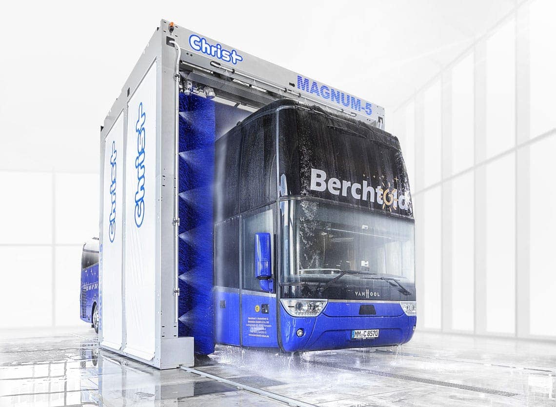 Pour y parvenir, le modèle MAGNUM-5 peut être exploité dans le cadre d’un concept de lavage pour bus (fonctionnement semi-stationnaire) et / ou de service de lavage (lavage lors de la traversée).