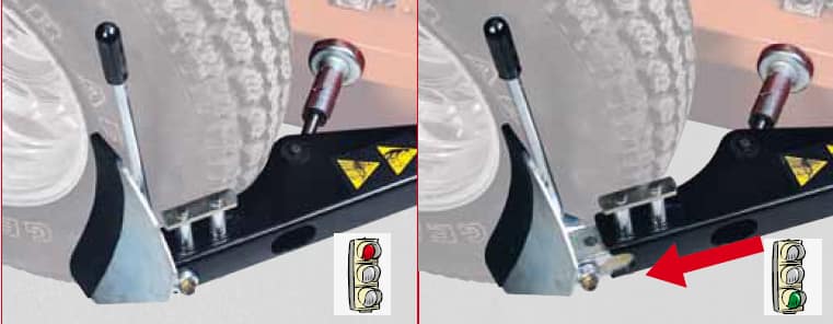 Le détalonneur prévu de série sur l’appareil a une caractéristique: pouvoir allonger la palette sur le bras fixe. Cela est très appréciable et idéal quand on travaille avec des roues de grandes dimensions et des roues de toutterrains. Par ailleurs, la palette de détalonnage est toujours bien positionnée par rapport à la roue ce qui évite un endommagement possible du pneumatique et/ou de la jante. Cette fonction est plus rapide et plus sûre. L’appui de la jante télescopique à deux positions (brevet CORGHI) est extrêmement utile pour détalonner tous les types de roues jusqu’à une largeur maximum de 14”.
