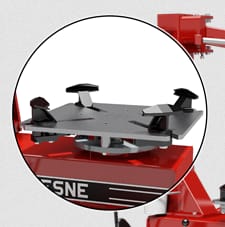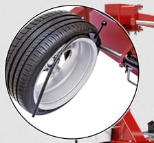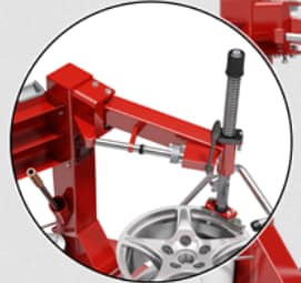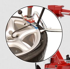 Le positionnement de la tête de montage et la prise de distance automatique de l ’outil à la jante se fait en un seul mouvement. De plus le réglage se conserve d’une roue à l’autre. La forme des outils de la tête de montage limite les tensions dans le pneu au minimum et permet le montage des pneus sur des jantes au voile proéminent.
