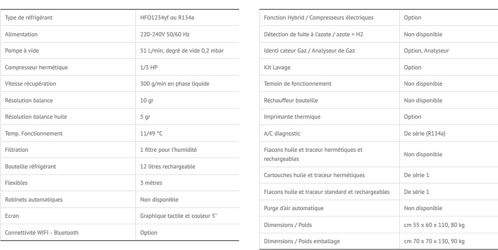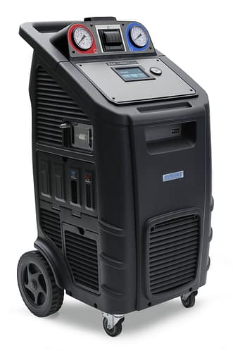 Station de recharge A/C entièrement automatique pour la récupération, le recyclage et la recharge de différents types de fluides frigorigènes. La solution innovante et exclusive permet de régler le gaz R134a ou HFO1234yf directement lors de l’activation sur le site, avec le kit d’activation.