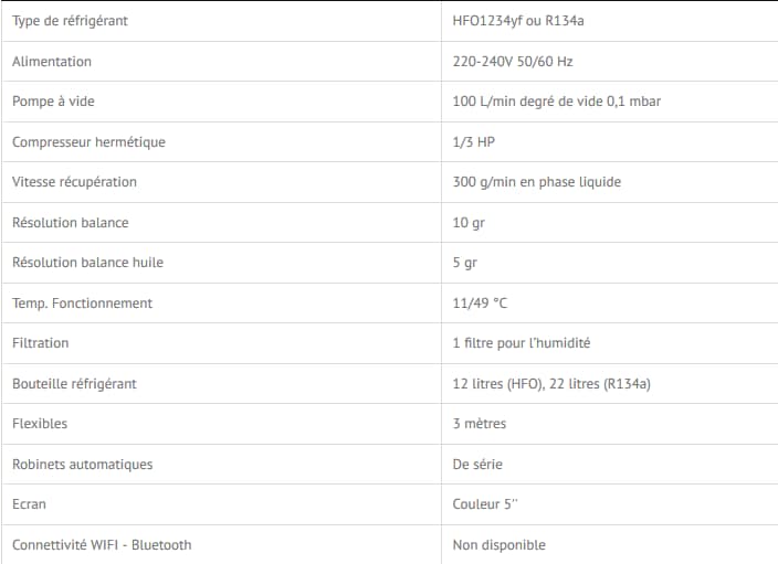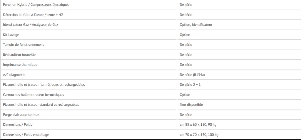 Cette station est en ligne avec le plus haut niveau de performance et d’efficacité dans la conception « Black Line ». L’étude de cette station combine habilement les différents composants afin d’offrir un produit particulièrement attrayant et équipé pour la gestion de R134a ouHFO1234yf.
