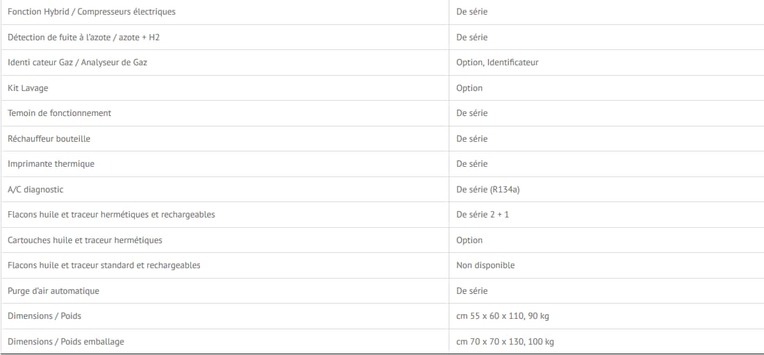 Cette station est en ligne avec le plus haut niveau de performance et d’efficacité dans la conception « Black Line ». L’étude de cette station combine habilement les différents composants afin d’offrir un produit particulièrement attrayant et équipé pour la gestion de R134a ouHFO1234yf.