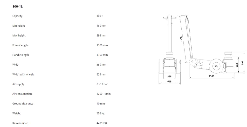 2 lifting lugs and a handle that can be tilted backwards for easy handling and transport of the jack