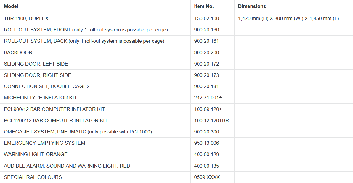 TBR 1100 replaces the inflation cages IC1, IC1 UNI, UNI XL and HP2.