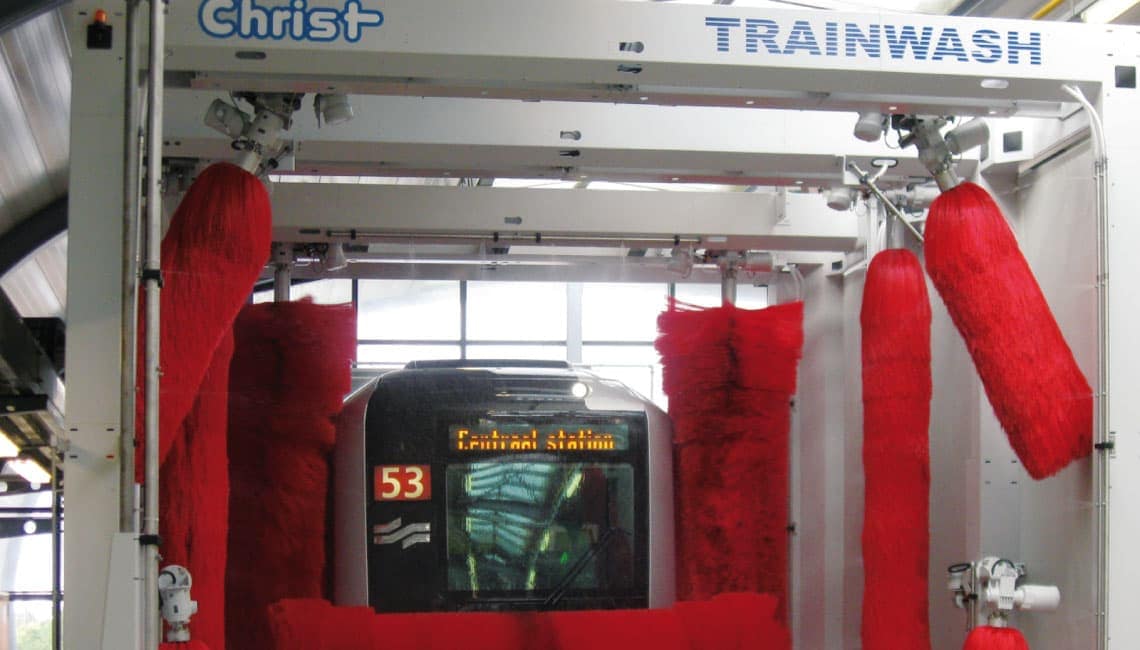 Christ distinguishes itself from the others by the fact that our engineers find solutions for even the rare and difficult applications. As can be seen from the picture on the right, we have constructed a train wash for a monorail train. In principle, this was a challenge because the „track bed“ has a completely different structure and this had to be respected in accordance with the dimensions and movements of the system’s engineering.