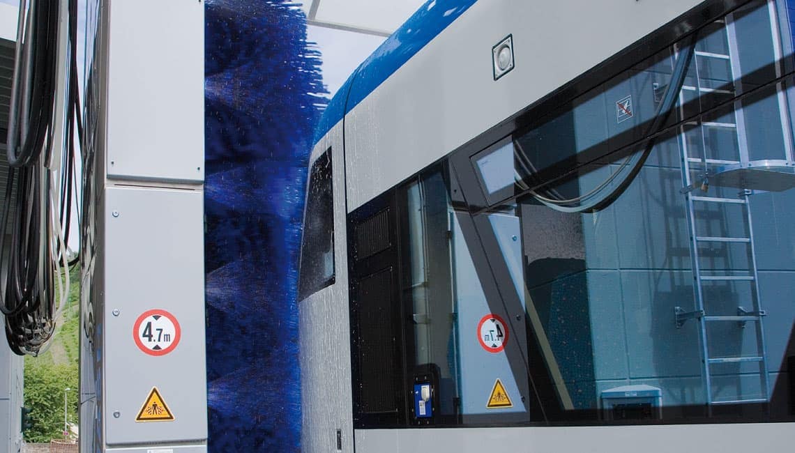 The train wash unit C5400 SOA can be designed as a stationary, semi-stationary or mobile wash for trains without pantographs. The Train Wash C5400 SOA can be individually designed.