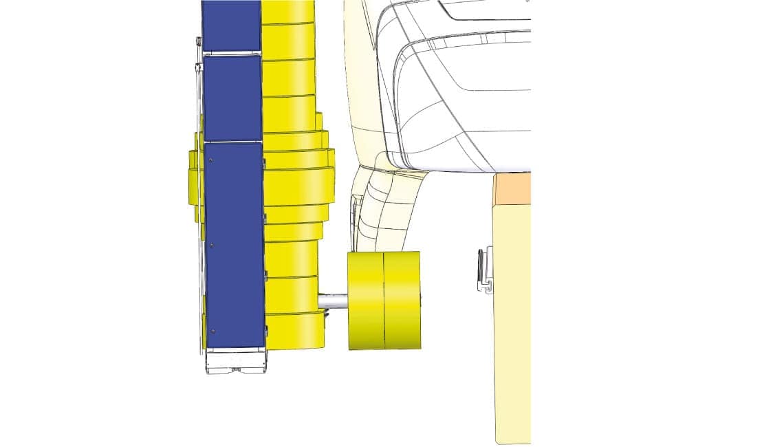 The train is positioned before or after the washing system for front / rear wash and the vehicle passes through the wash, self-propelled, for the side wash. The roof wash is optional.