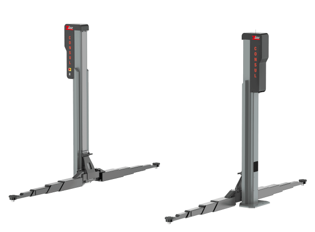 Flexibly mountable 2-post hydraulic lift with proven technology based on the mechanical “Edition” especially suited for transporters with long wheel base (4.025 mm).