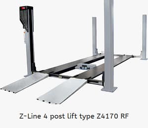 The allround model: 4 post lift with extra long and broad adjustable platforms. Ideal for maintenance of commercial vehicles.