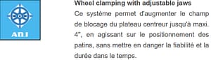 Tabletop thickness 14 mm w/adjust. jaws (Giuliano patent);