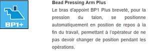 Equipped with BP1 Plus bead pressing arm (standard), complete with self-storage function, Giuliano patent;