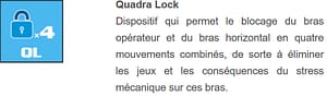 QuadraLock system for total stiff locking of horizontal and operating arm;