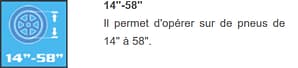 1) For the rims from 47″ to 58″ it is necessary to use the optional set of 4 jaw extensions for clamping wheels from 47″ to 58″.