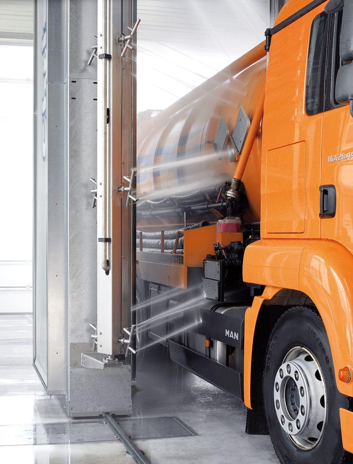 The perfect addition to the wash system if vehicles with special geometries such as silo trucks and special vehicles have to be washed. The JETSTREAM high pressure device is also designed to pre-clean very dirty vehicles such as tipper trucks and disposal vehicles.