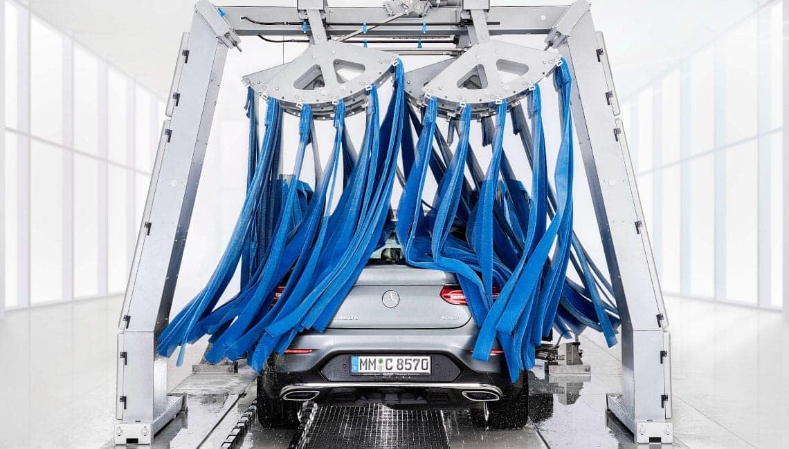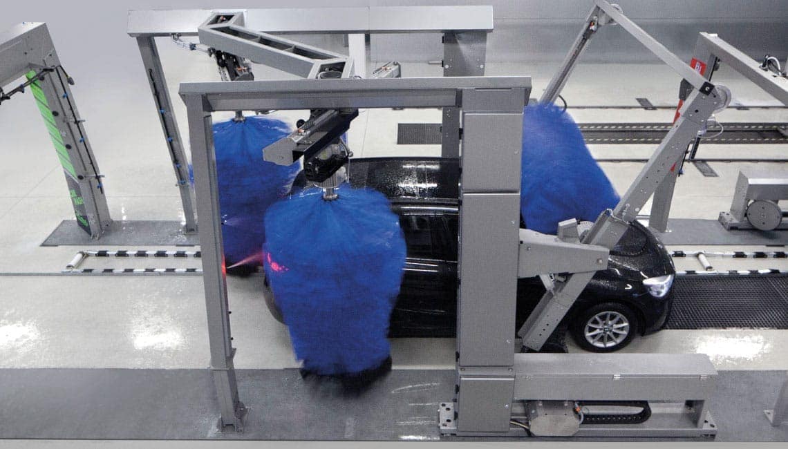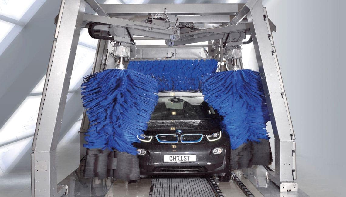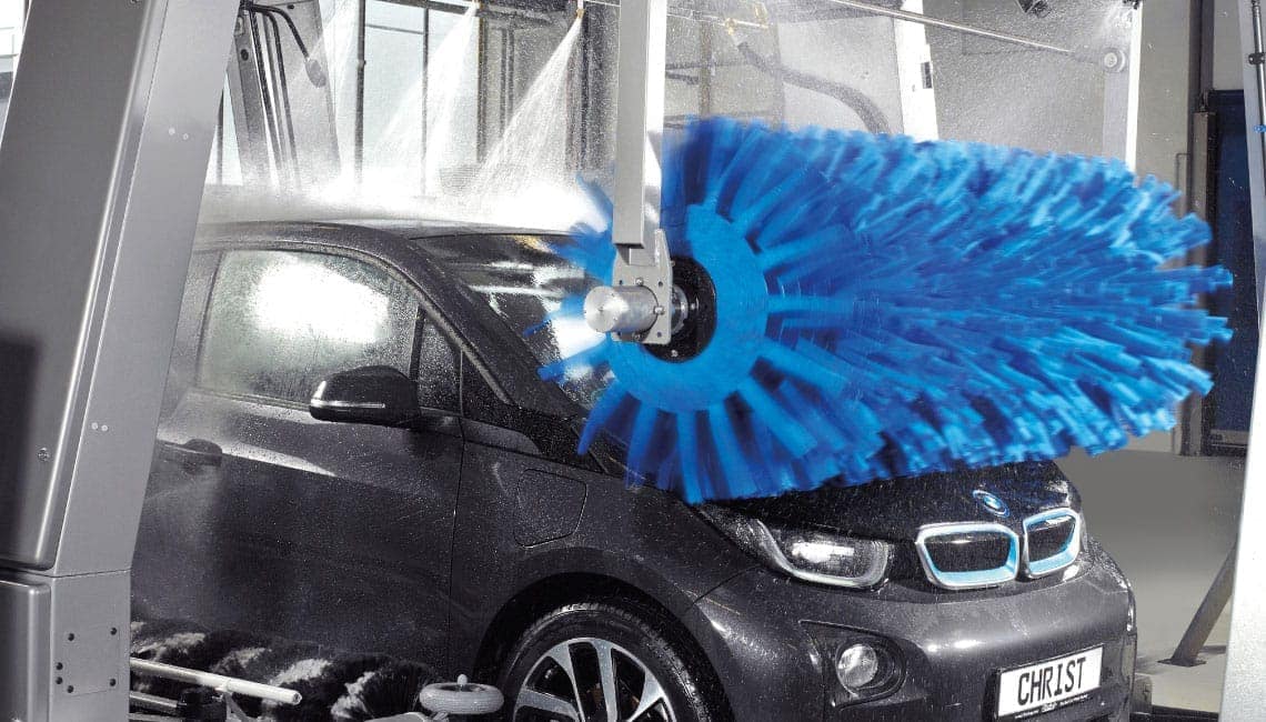 Two profiled side cylinders perform a centre cross-over wash on the vehicle. Opening and closing of the side cylinders succeeds electromotorically via the X-Rail direct drive with frequency