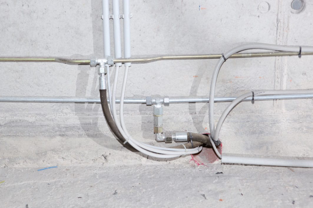 The photo shows how easy it is to install the electric and hydraulic connections located in the pit under the platform, between the two columns.