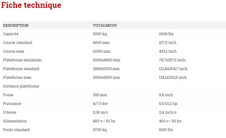 This system makes it possible to distribute the weights over the platform, even if they are off-center, thus making it possible to use the lift for goods as well as motor vehicles.