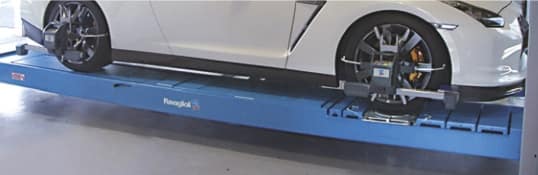 Extra-long platforms for total wheel alignment with front turning plates locations and rear slip plates.