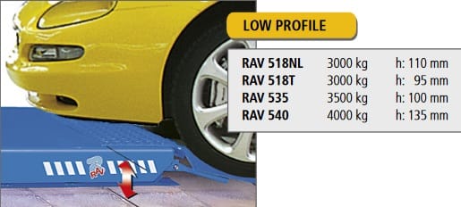 The RAV518 can lift up to 3000 kg, lifts between 720 and 725 mm and has a low height of between 95 and 110 mm;