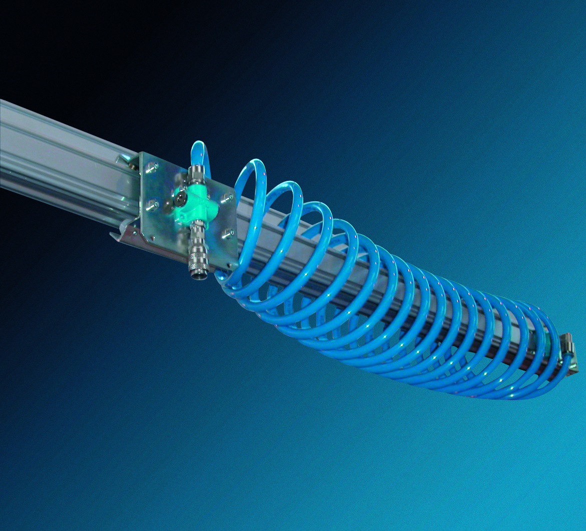 The hollow bar has a double function: track for the trolley and conduit for compressed air.