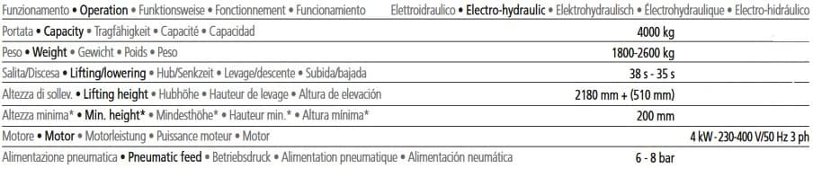 • Auxiliary lifting tables with double cylinders’ system and double extensions for longer wheelbase vehicles –