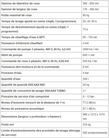 for wheels for passenger cars, vans, off-road vehicles and SUVs up to 360 mm wide with the diameter of up to 850 mm with any type of rims and tyres, with water heating system, pneumatic wheel stabilisation system and pneumatic wheel loading and unloading system (option)