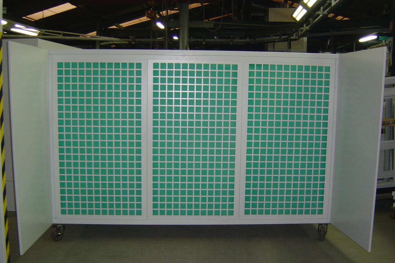 Mur d’extraction avec filtration à sec, équipé en standard d’un filtre à inertie + filtre Paintstop + filtre fin. Le filtre est fixé à trois endroits pour faciliter son remplacement