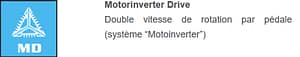 - Double vitesse de rotation par pédale (système “Motoinverter”);