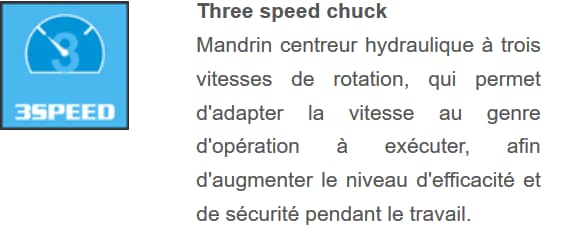 - Mouvement hydraulique de blocage du bras porte-mandrin, (haut-bas);