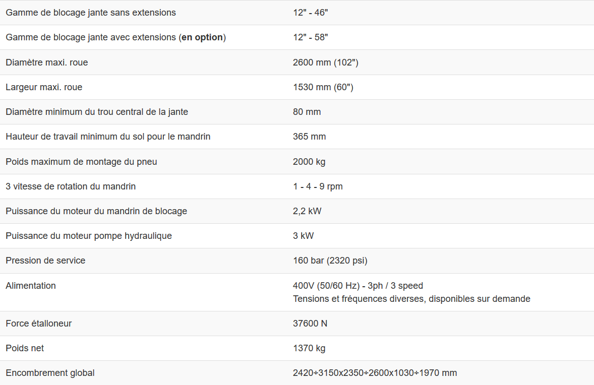 Recommandé pour roues P.L., autobus et véhicules agricoles, pour le service professionnel de pneus de camions et pour les ateliers gérant des volumes élevés.