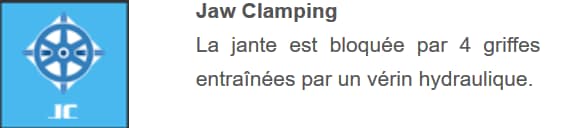 - Blocage de la roue par griffes à actionnement entiérement hydraulique;