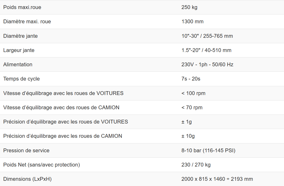 Equilibreuse électronique digitale avec afficheur à LED réglable, pour roues P.L. et V.T. d’un poids maxi. de 250 Kg