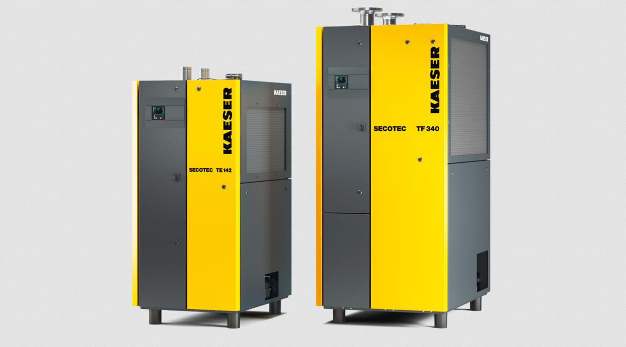 Les sécheurs frigorifiques SECOTEC – représentés ici par les séries TE et TF (*) – sont depuis longtemps synonymes de qualité industrielle et de fiabilité pour des points de rosée stables et des coûts très bas sur tout leur cycle de vie.