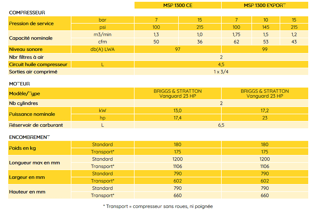 Compresseur mobiles à essence MSP 1300