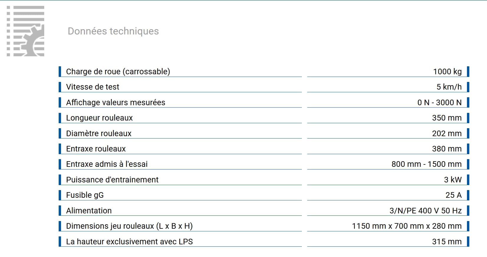 •des rouleaux bien équilibrés et à billes rigides garantissent une très grande précision, un confort de conduite absolu et une longue durée de vie du banc d’essai dans son ensemble